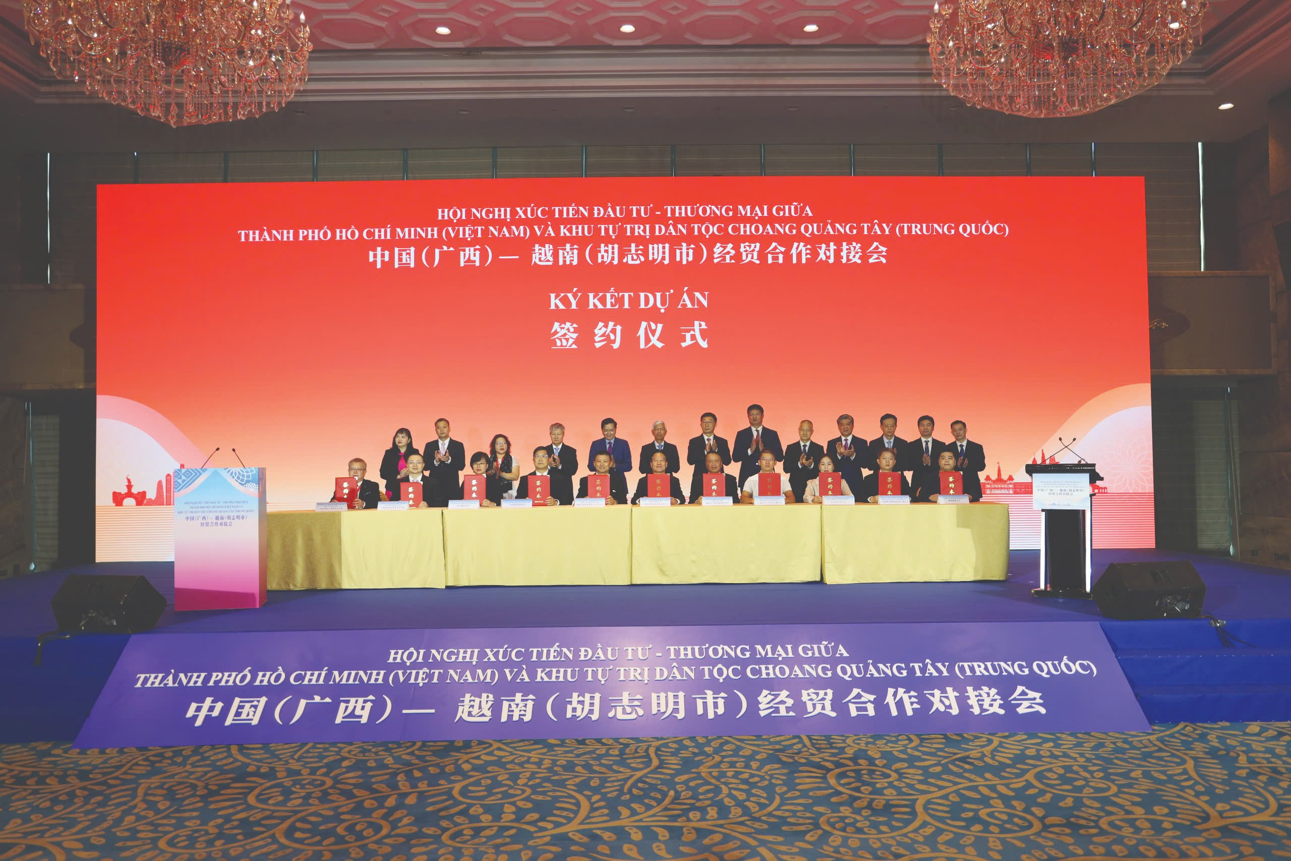 Ngày 27/8/2024, Hội nghị xúc tiến đầu tư - thương mại giữa Thành phố Hồ Chí Minh (Việt Nam) và Khu tự trị Dân tộc Choang Quảng Tây (Trung Quốc) đã diễn ra tại TP.HCM với chủ đề: "Chung tay đồng hành, hợp sức cùng tiến, đưa hợp tác kinh tế và thương mại Cộng đồng chia sẻ tương lai Trung Quốc - Việt Nam lên tầm cao mới”.