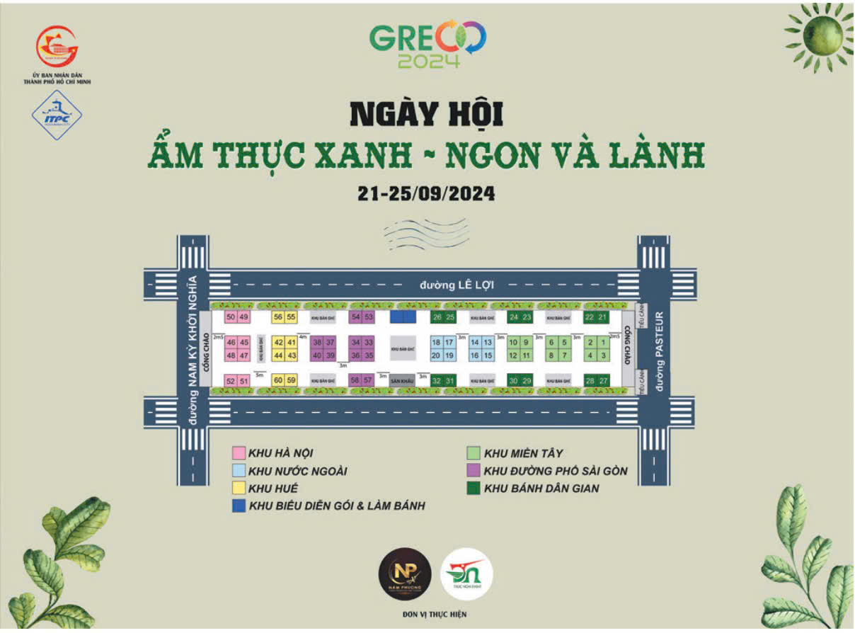 Một trong những hoạt động hấp dẫn người tiêu dùng tại GRECO 2024 là NGÀY HỘI ẨM THỰC XANH - NGON VÀ LÀNH diễn ra tại lòng đường Lê Lợi kéo dài từ đường Nguyễn Huệ đến đường Pasteur.