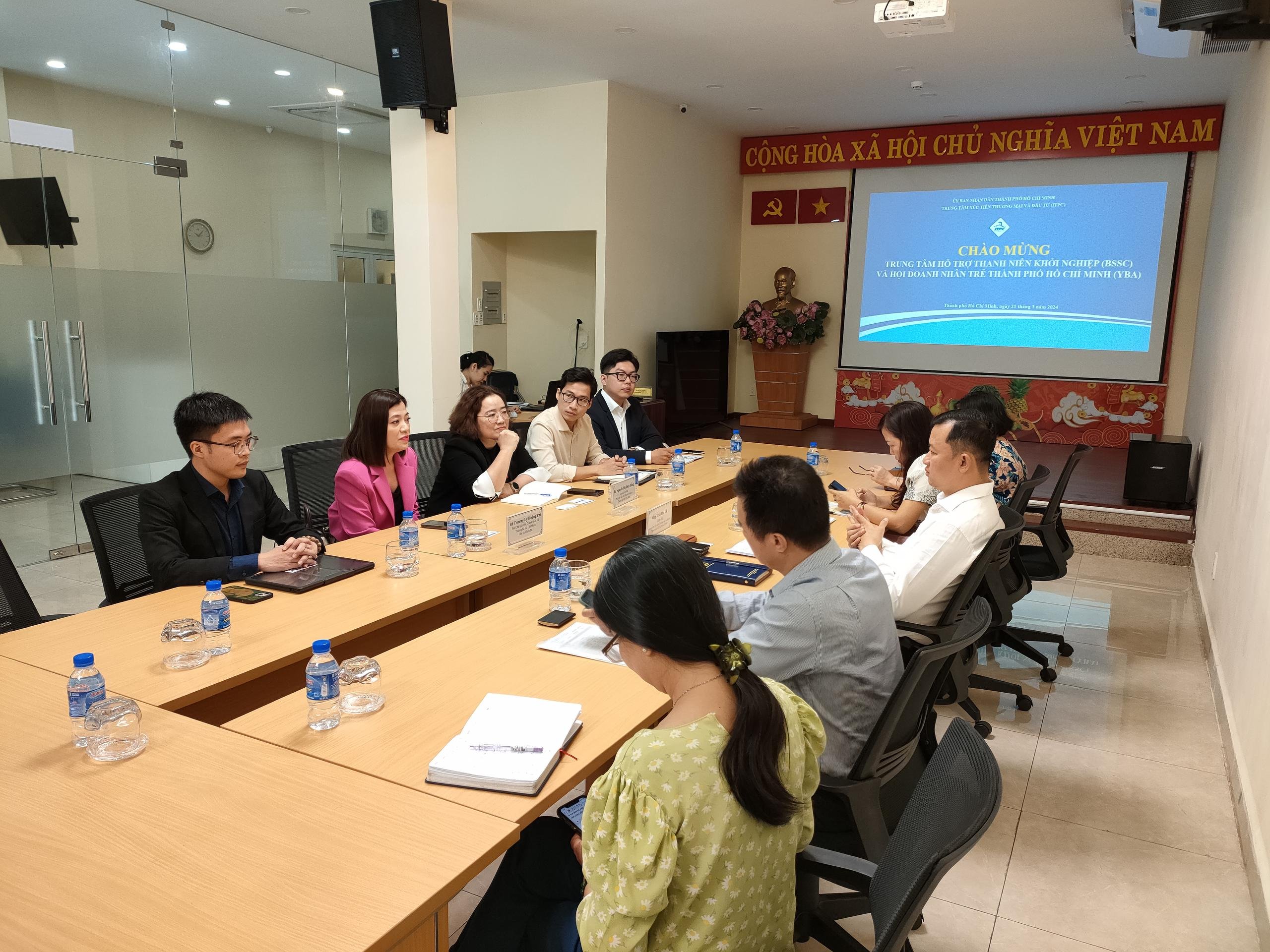 Sáng ngày 21 tháng 3 năm 2024, Trung tâm Xúc tiến Thương mại và Đầu tư Thành phố (ITPC) đón tiếp Trung tâm Hỗ trợ Thanh niên Khởi nghiệp (BSSC) và Hội Doanh nhân trẻ TP.HCM (YBA) tại Hội trường ITPC, số 51 Đinh Tiên Hoàng, phường Đa Kao, Quận 1.